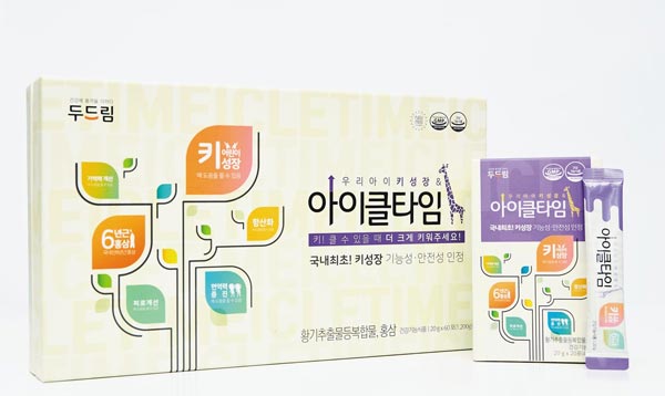 두드림이 추석 맞이 700명 한정 '아이클타임' 사은 행사를 진행한다. '아이클타임'은 국내 최초로 식품의약품안전처에서 키성장 기능성 원료로 인정받은 황기추출물 등 복합물(HT042)과 면역력 증진, 기억력 개선, 피로 개선, 항산화 등 기능성을 인정받은 6년근 홍삼을 주원료로한 어린이 키성장 건강기능식품이다.